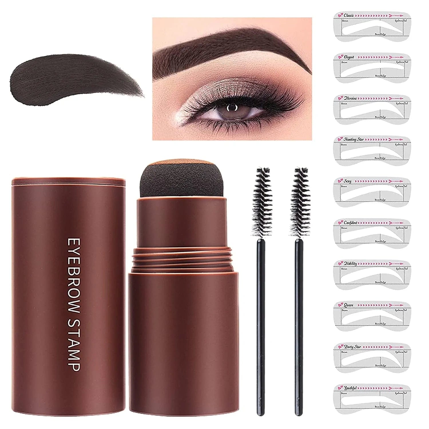 Super Easy to Use: Choose a stencil shape, unscrew the lid, hold the stencil in place with one hand, gently press and stamp your eyebrows. Start at the tail of the eyebrow and slowly work your way up to the base of the eyebrow. See the Illustration below.