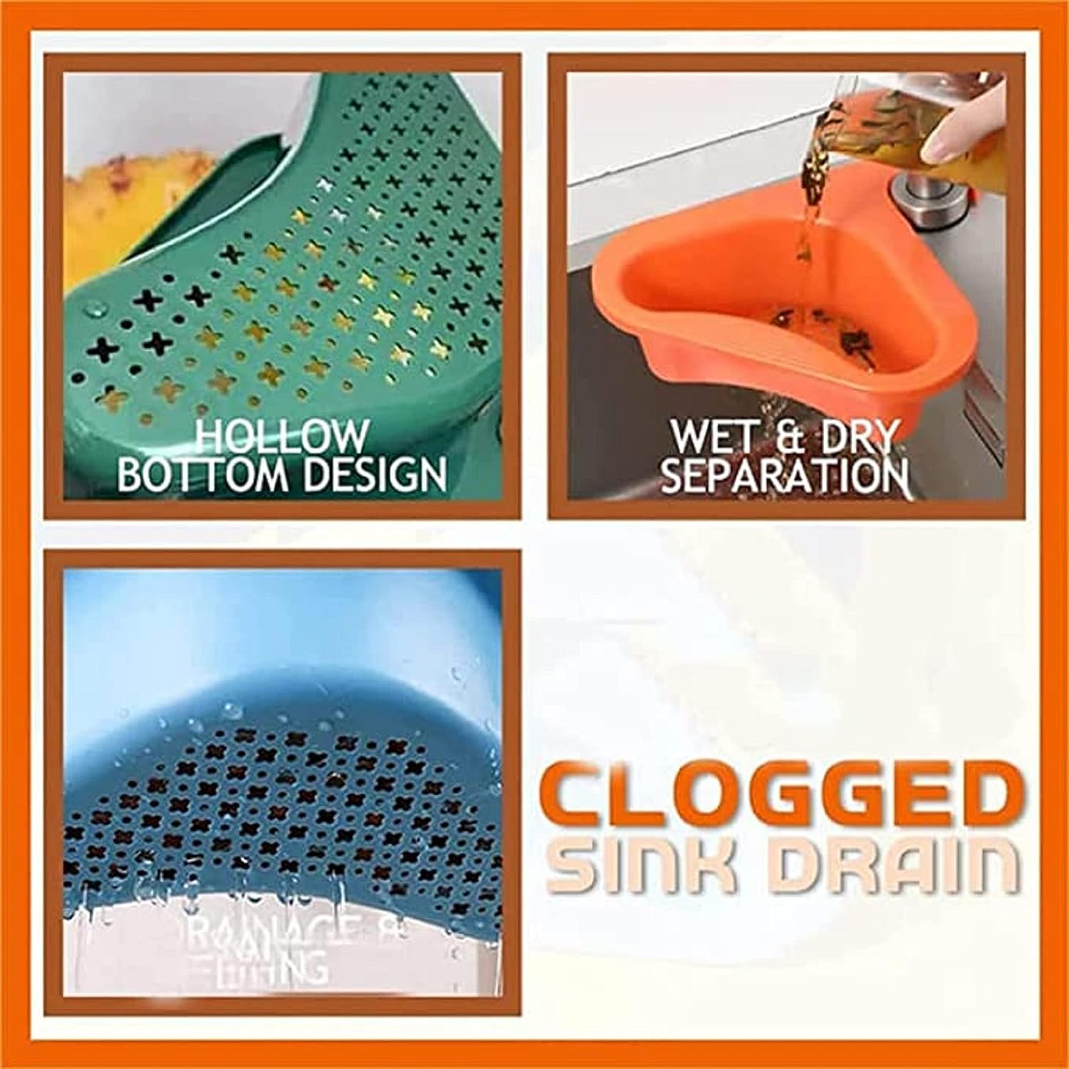 Space-Saving and Stylish: With its unique triangular, swan-shaped design, this basket fits snugly in the corner of your sink, saving space for your cleaning tasks. Available in vibrant colors like yellow, orange, blue, and green, it adds a fun and lively touch to your kitchen decor.